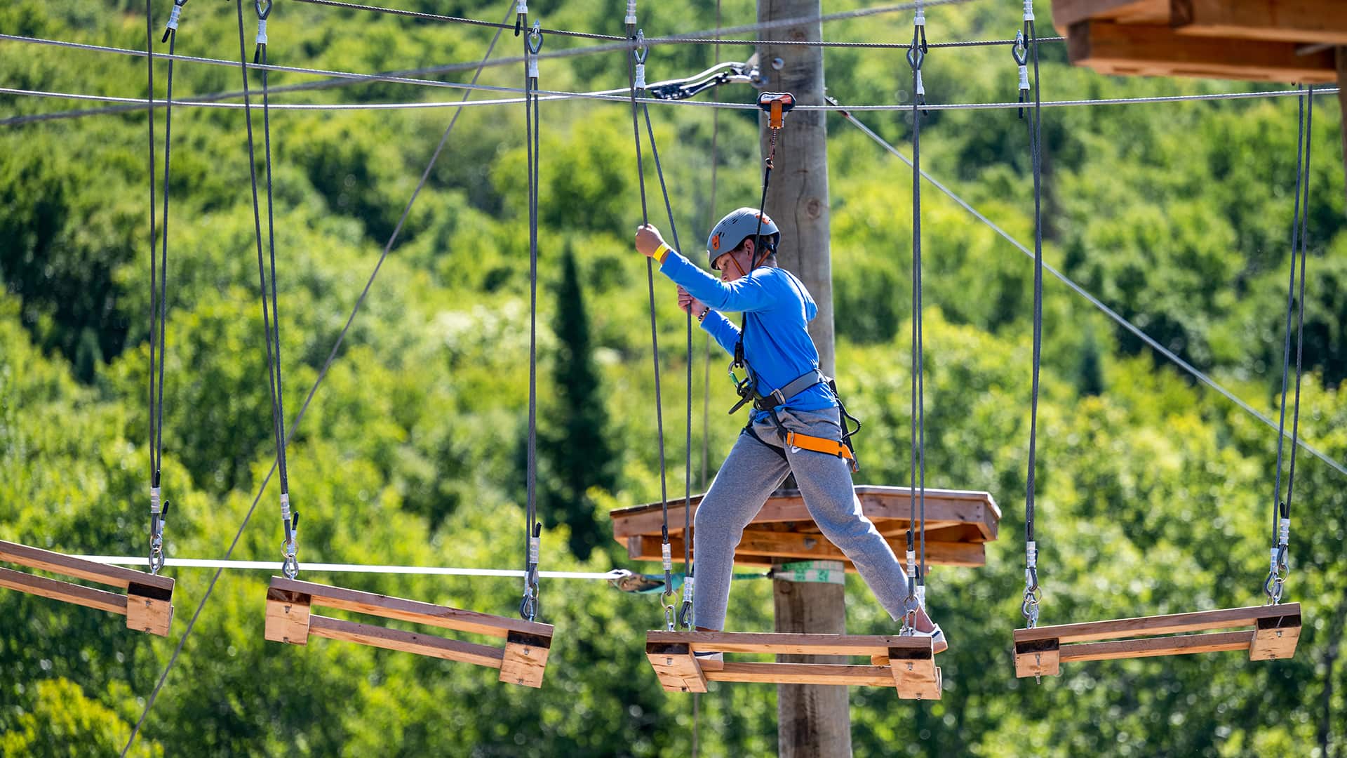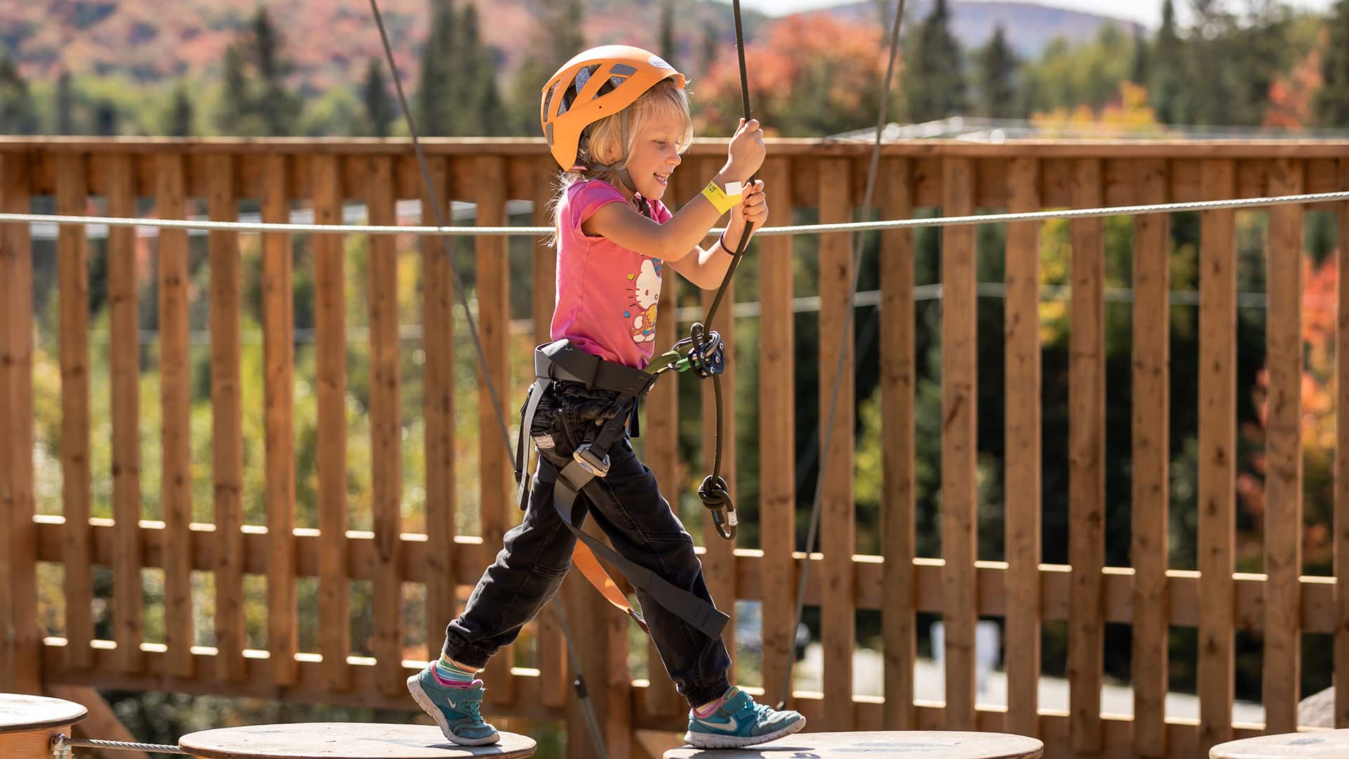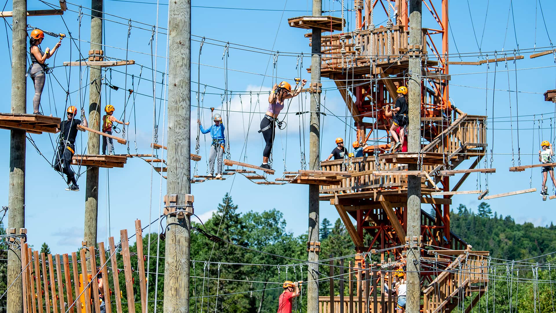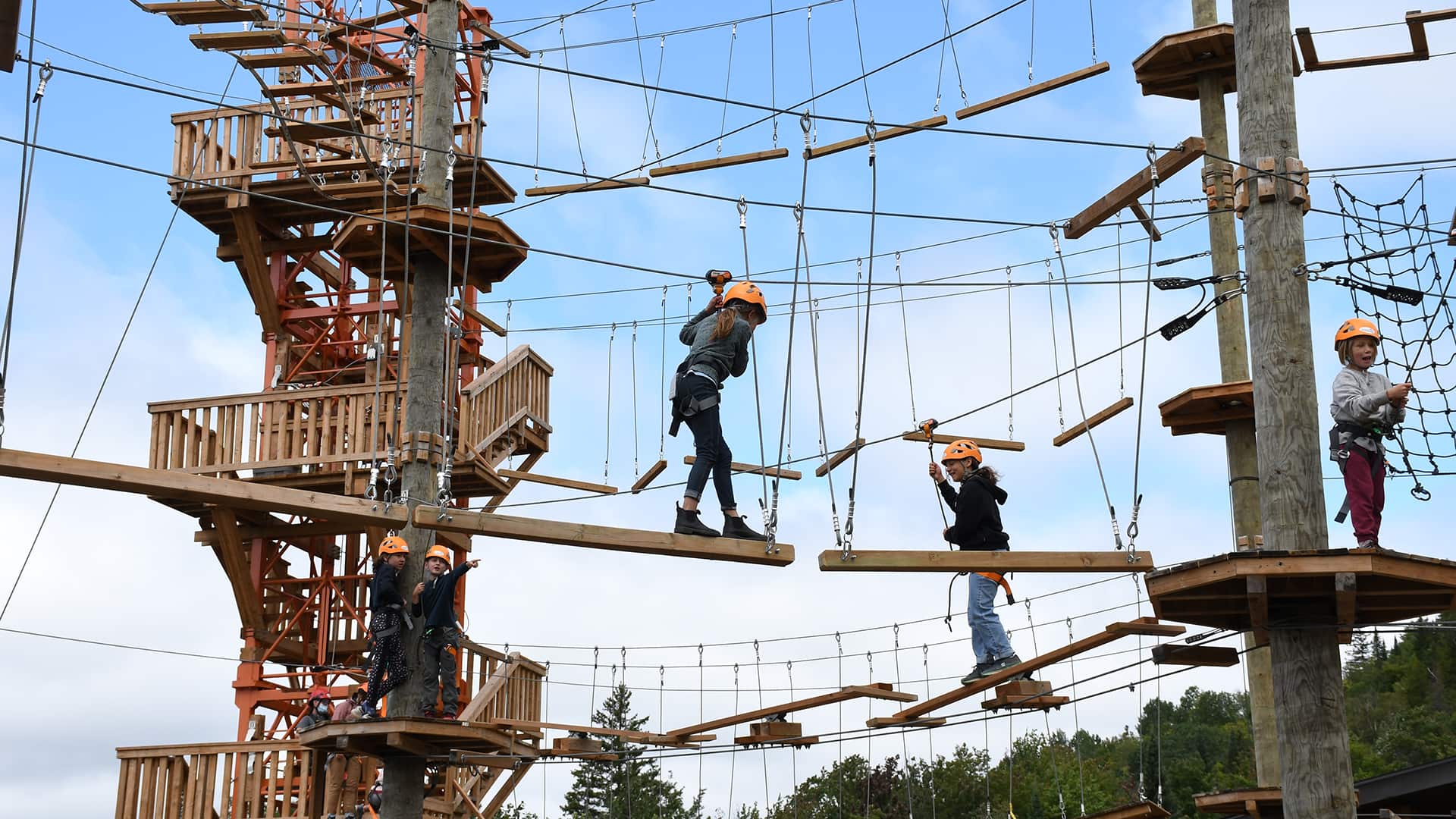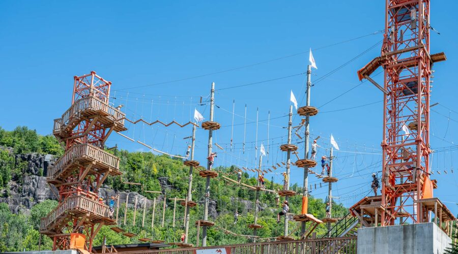 Our Mont-Catherine Aerial Adventure Park is a 4-level obstacle course combining agility and balance games that are accessible for ages 3 yrs +.