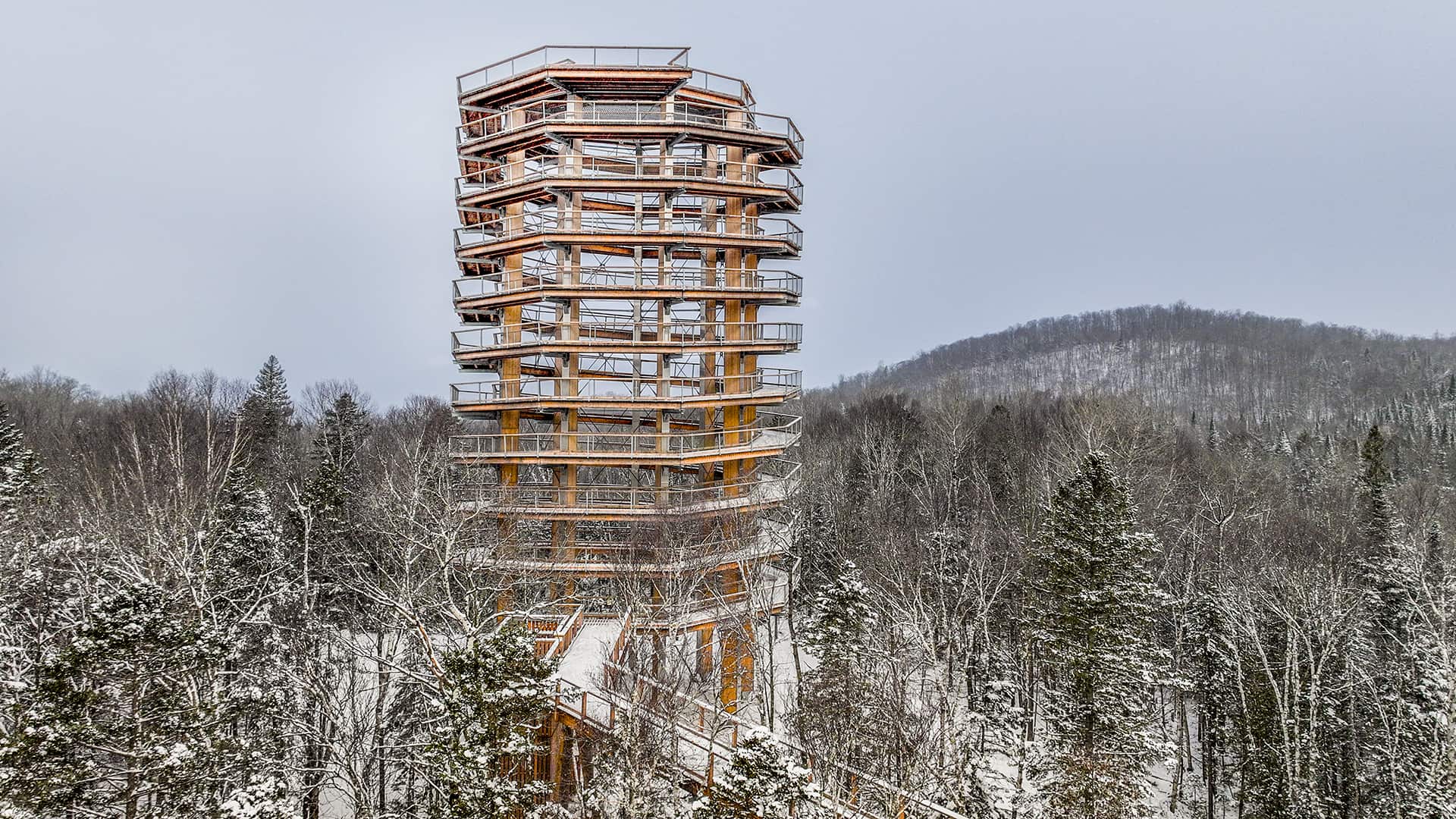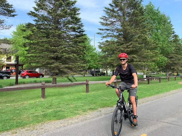 Our self-guided bike tour is a full-day bike rental that allows you to discover the nature of the Laurentians by traveling 8 km (16 km round trip) on the P’tit train du Nord to the observation tower at Sentier des Cimes.