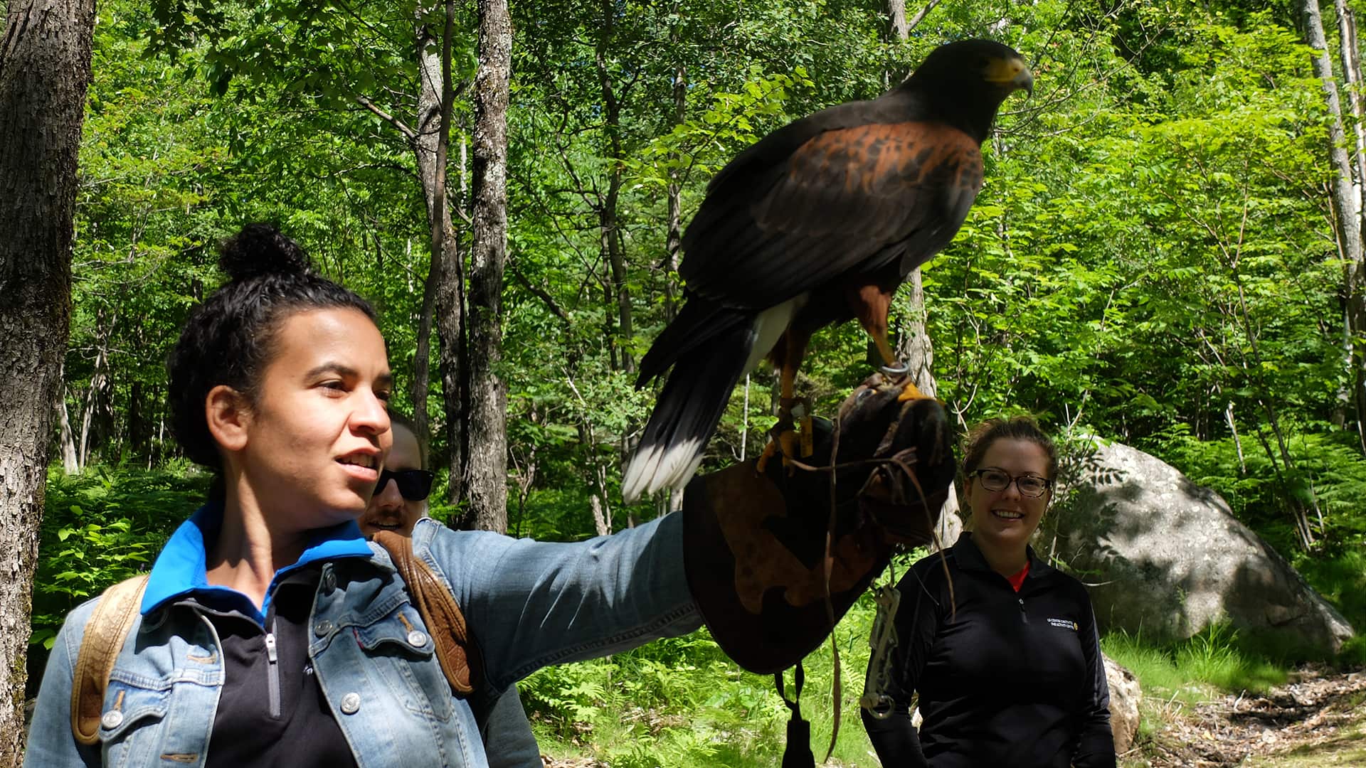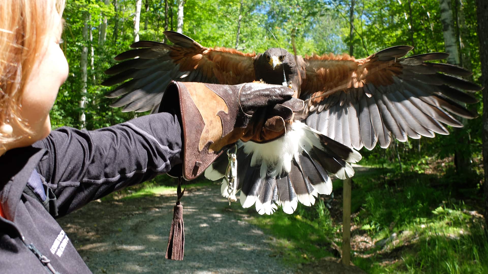 Our Mont Tremblant Falcon activity, the Apprentice Falconer Hawk Walk, takes place right on the Tremblant resort. Accompanied by our falconer and a trained raptor (a Harris Hawk), the apprentice will get to experience the thrill of calling a bird of prey to their gloved hand. During this hawk walk activity our falconer will introduce the apprentice to the basics of falconry including: