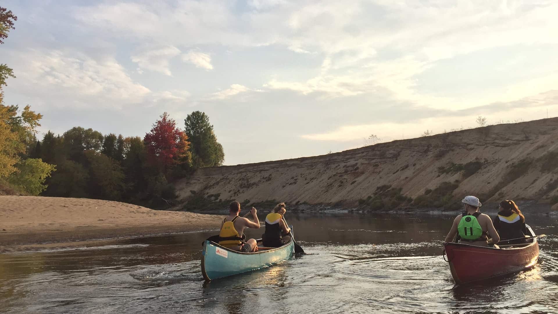 Our self-guided kayaking activity begins at our dock on the Rivière du Diable, after a short 5-minute walk along our trails, and ends 5 km further, at the meeting point for the return shuttle which picks you up 2 hours after your departure. It gives you plenty of time to enjoy the river and its beaches since the route can be completed in less than 1 hour 30 minutes if you paddle non-stop.