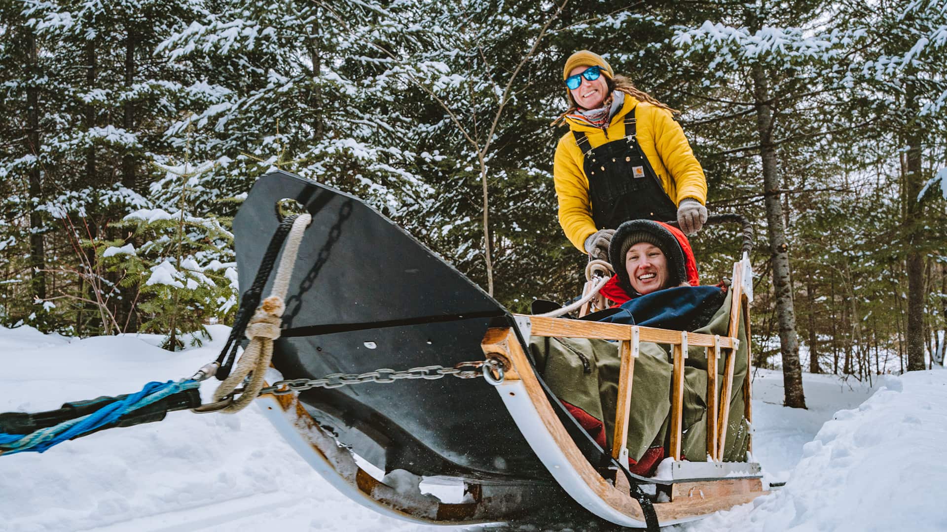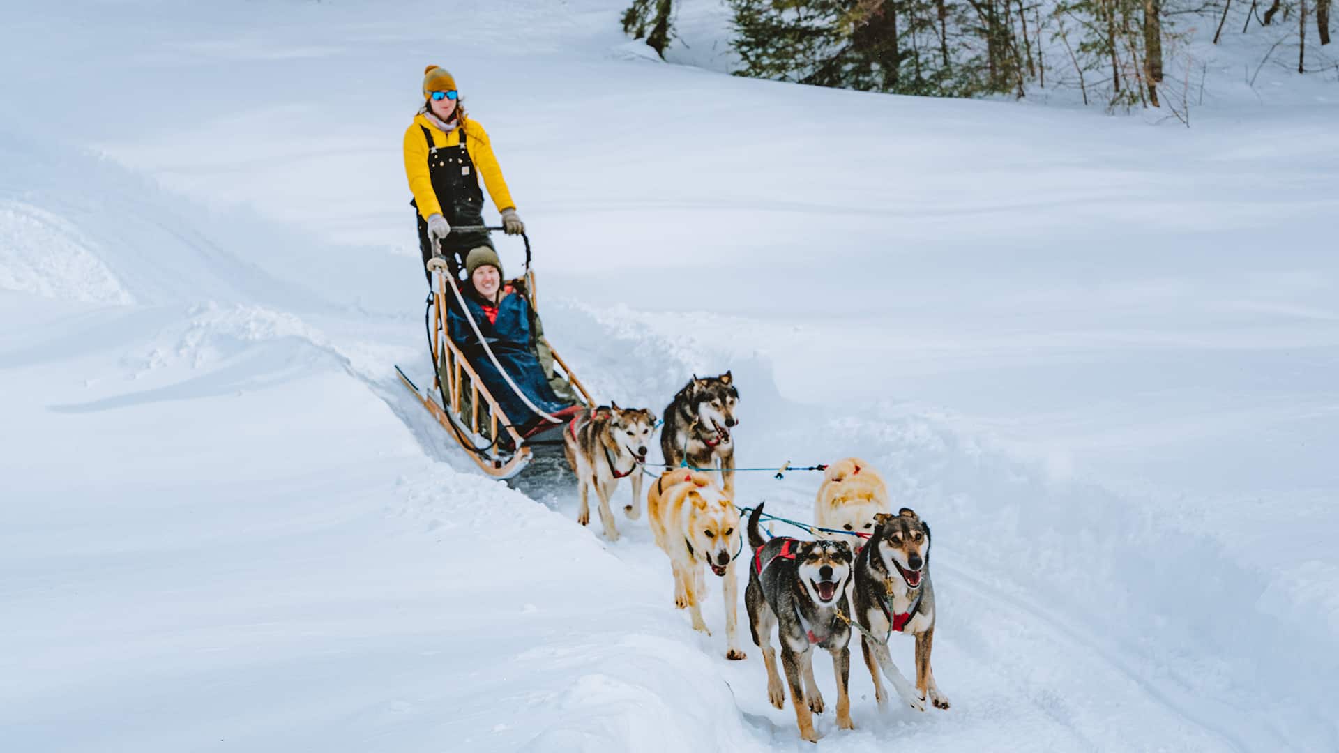 Our Dogsledding – Upper Laurentians takes place in the Laurentien forest north of Mont-Tremblant, where you’ll ride on trails through the mountains and wilderness. The experience rides from December through March, depending on snow conditions.