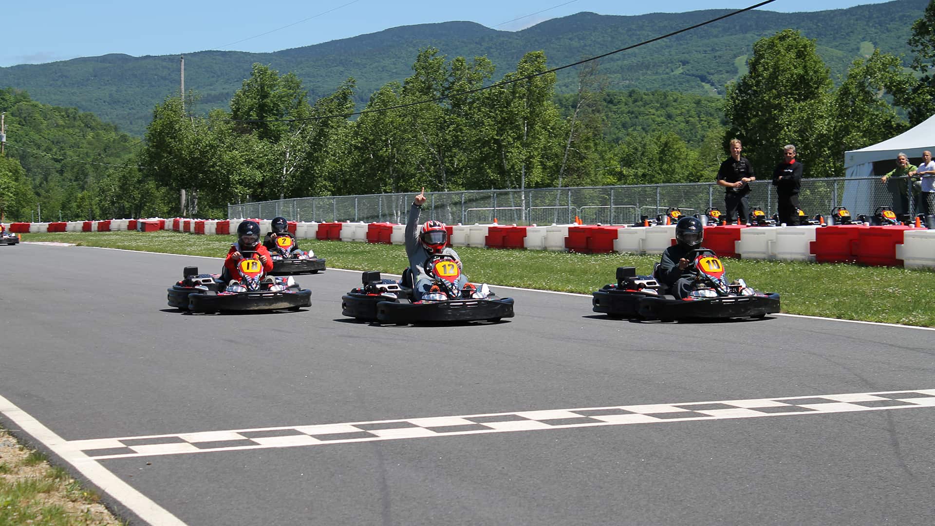 Our Tremblant Go-karting programs begins with an introduction on security measures and driving techniques. You can choose from 3 different karting packages. Each go-karting package includes a minimum of 1 practice session of 12 minutes. Our go-karts have adjustable pedals for different sizes, a bumper system and rear brake assembly. You’ll reach speeds of around 60 km/h (Centurion SeniorP 9 HP, Honda GX390 engine).