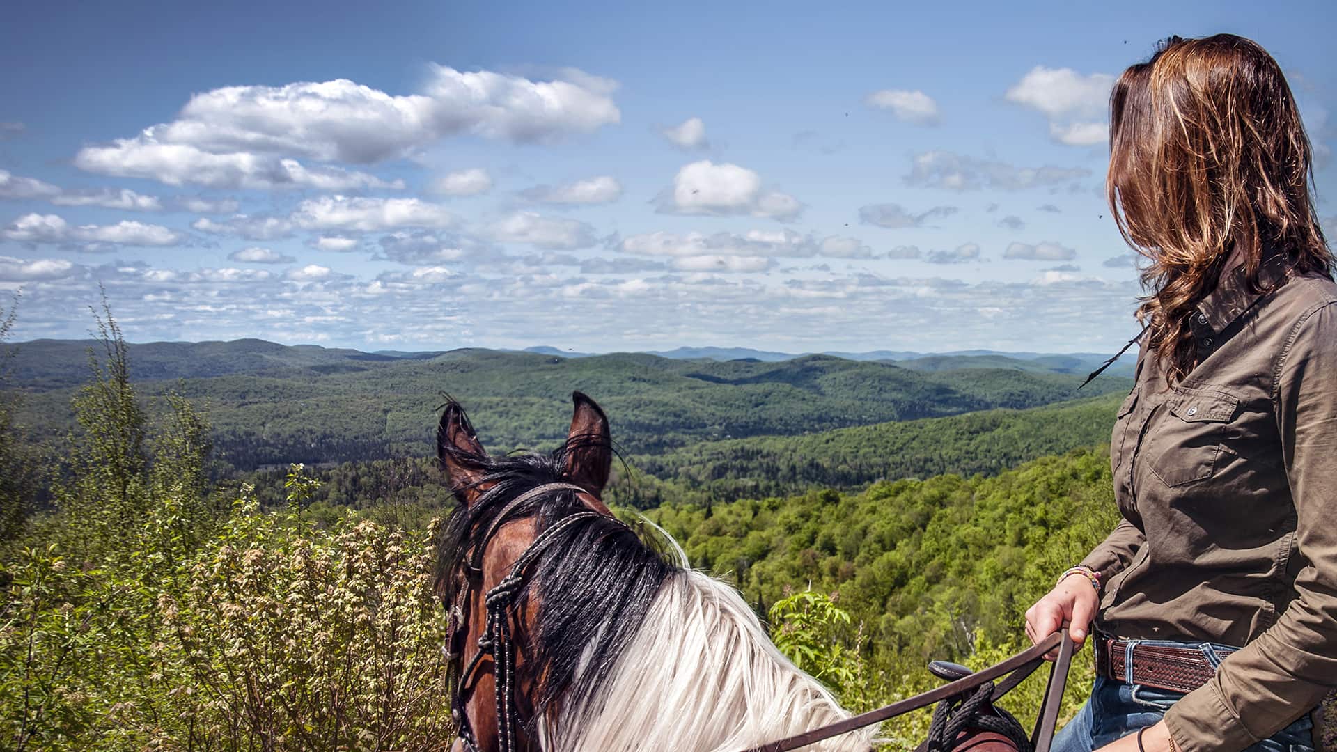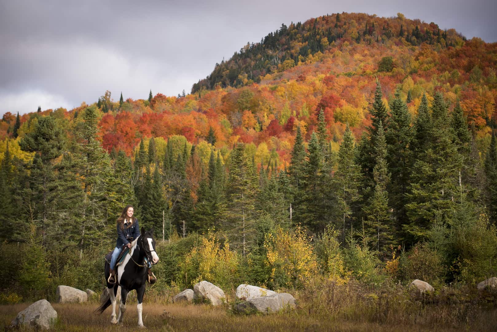 Experience our horseback riding and discover the beautiful Laurentian landscapes with our guide on our 1h45 minute forest trail or on our 2-hour Panorama & Bison horse trail ride.