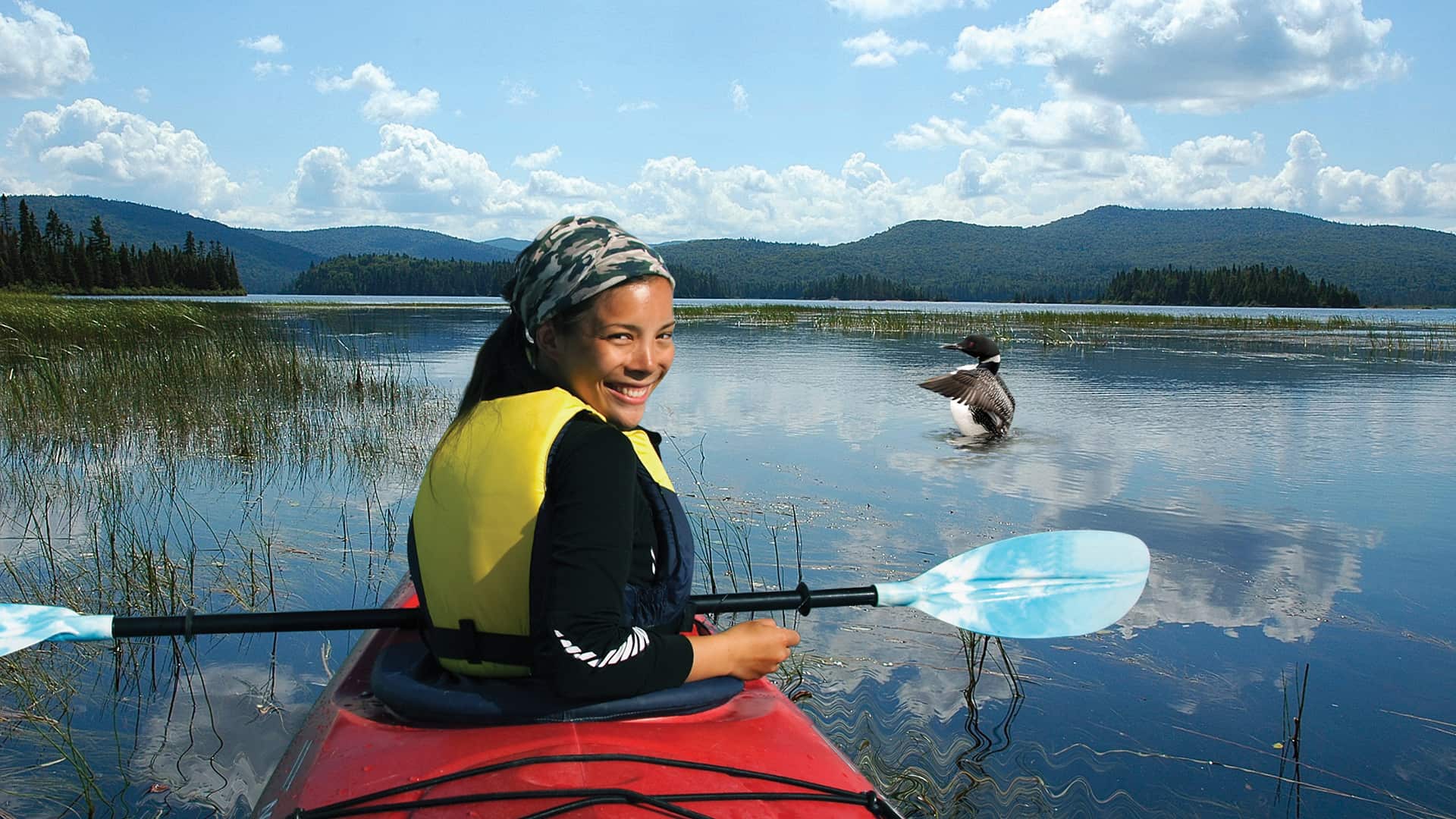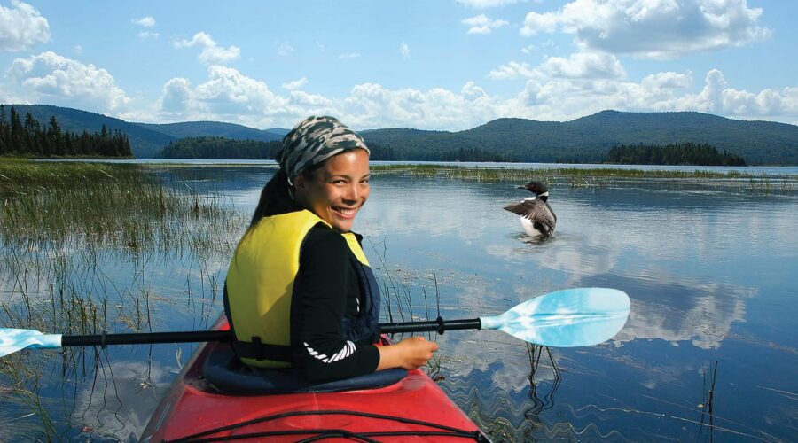 Our Parc Mont Tremblant Kayaking activity is made for nature lovers and is one of many things to do in Mont Tremblant National Park! Enjoy a unique experience: a morning spent sea-kayaking on a large lake, accompanied by our park warden–naturalist, observing and helping to gather data on this unique water fowl with its singular cries.