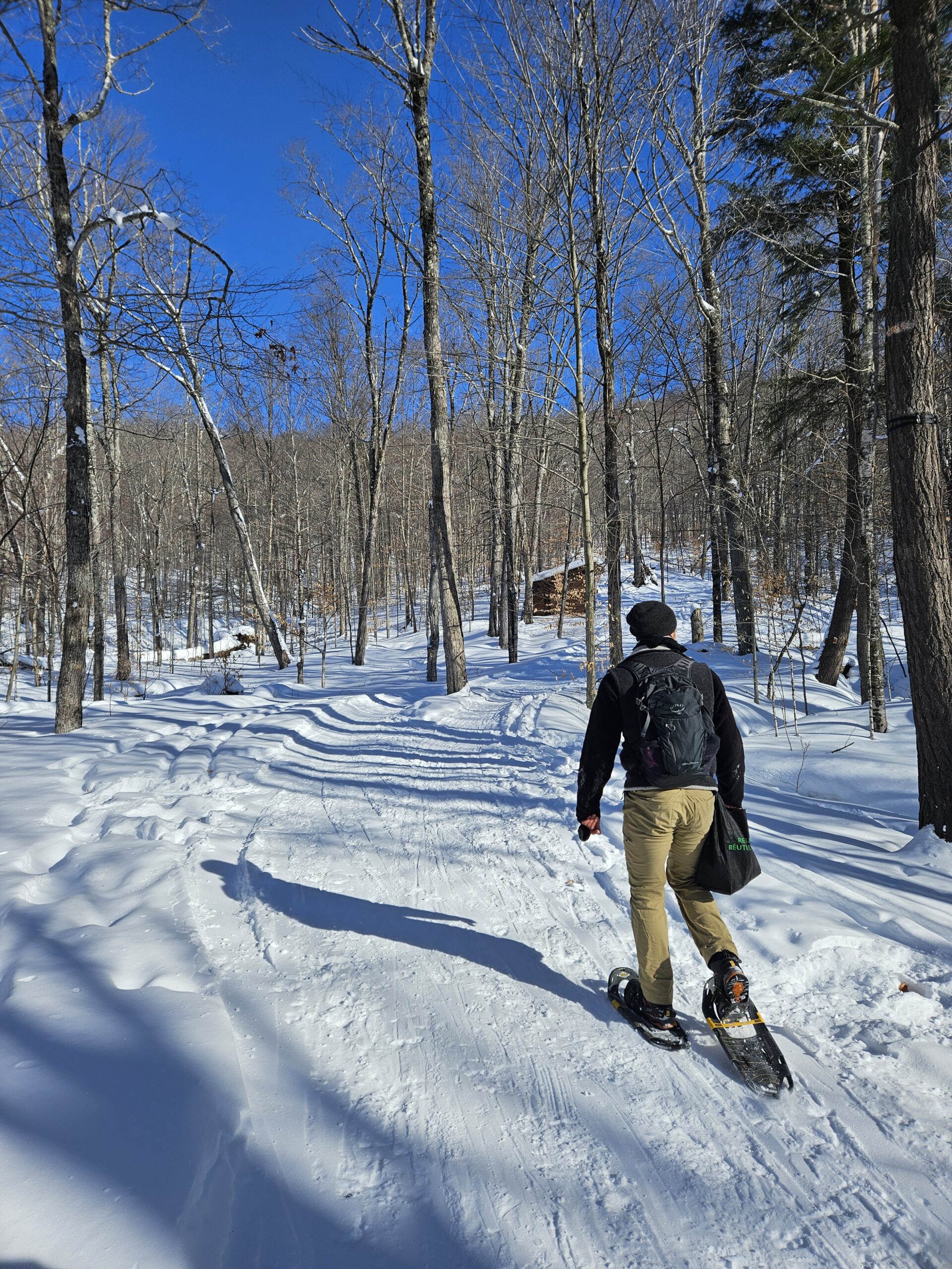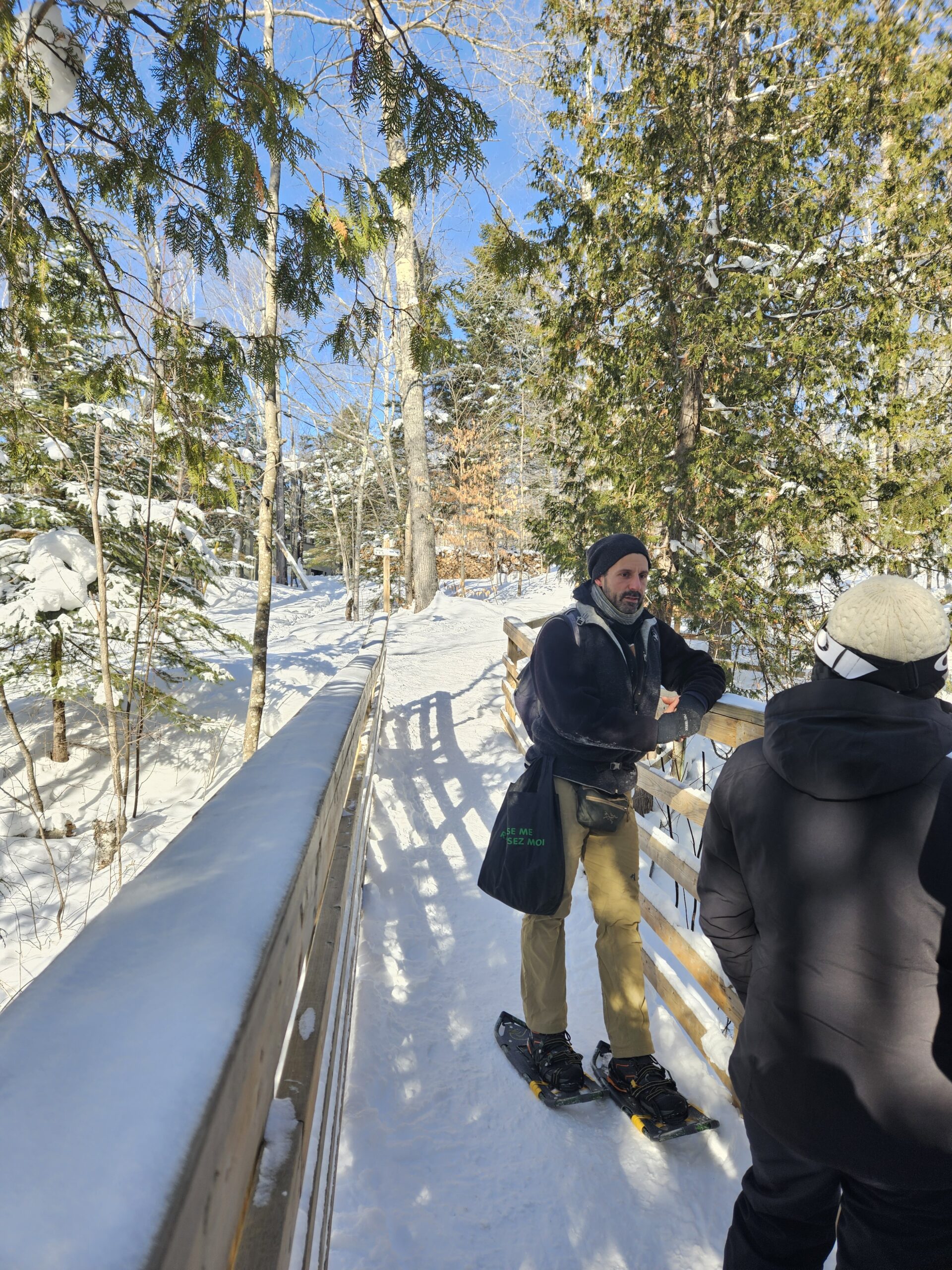 Our snowshoeing tours are led by Alex or Richard, both certified outdoor guides with years of experience in the Laurentian mountains. They’re passionate about sharing their knowledge of the forest, wildlife tracking, and Québécois traditions.
