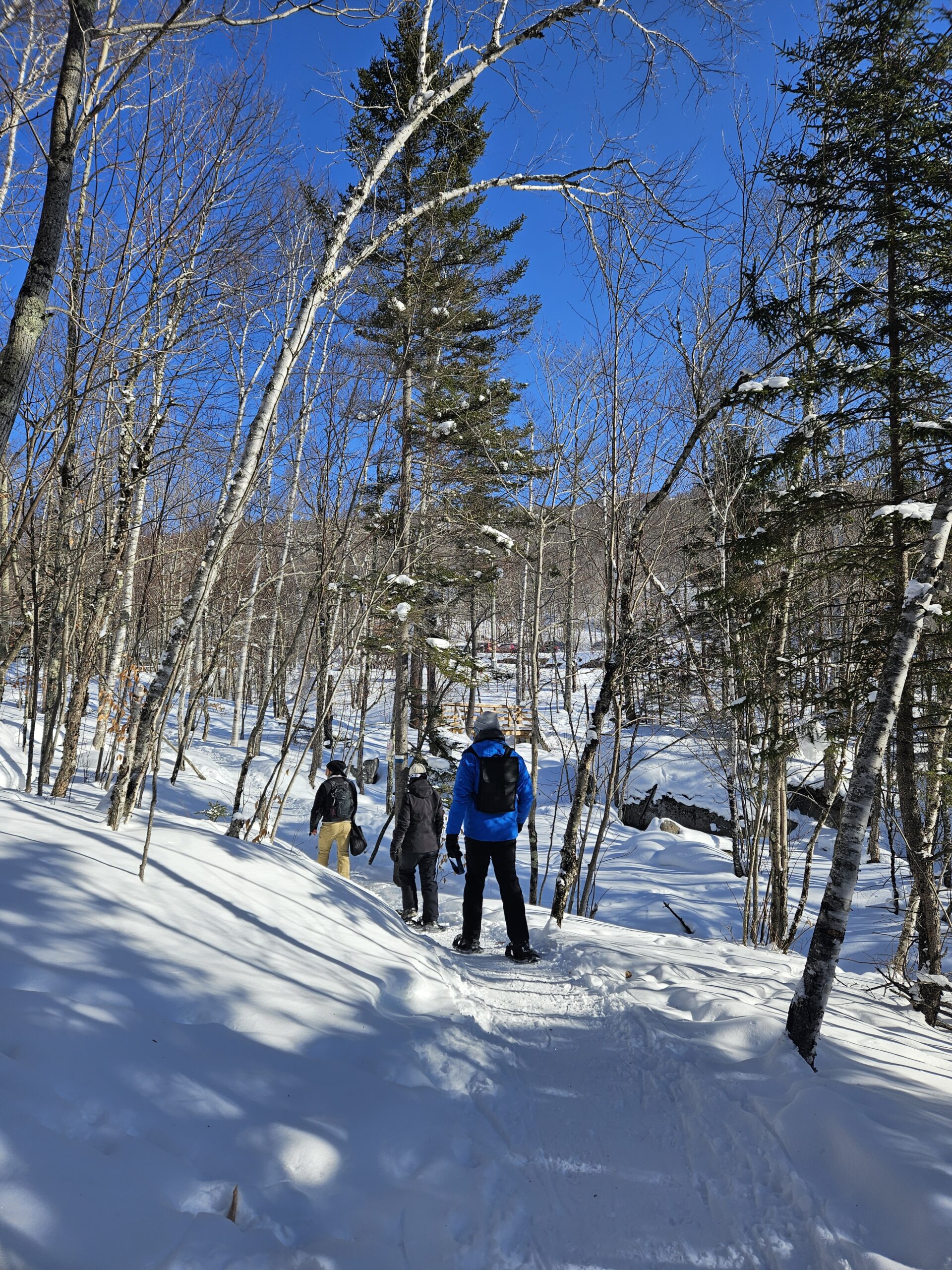 You’ll hike through pine and hardwood forests while we point out animal tracks and signs like blackbear, porcupine and white-tailed deer. Our guide knows the trails well and will adjust the route based on the group’s pace and snow conditions.