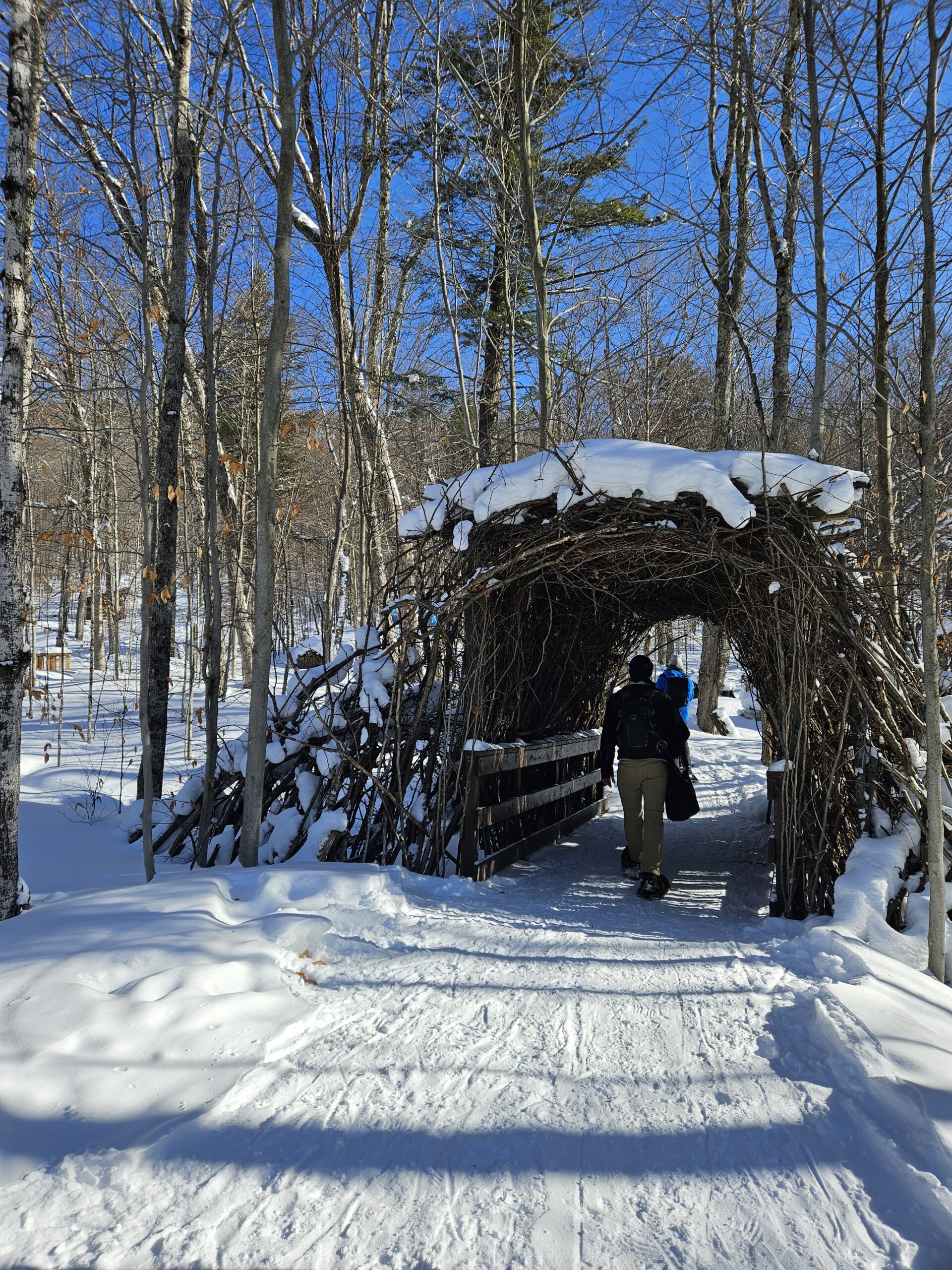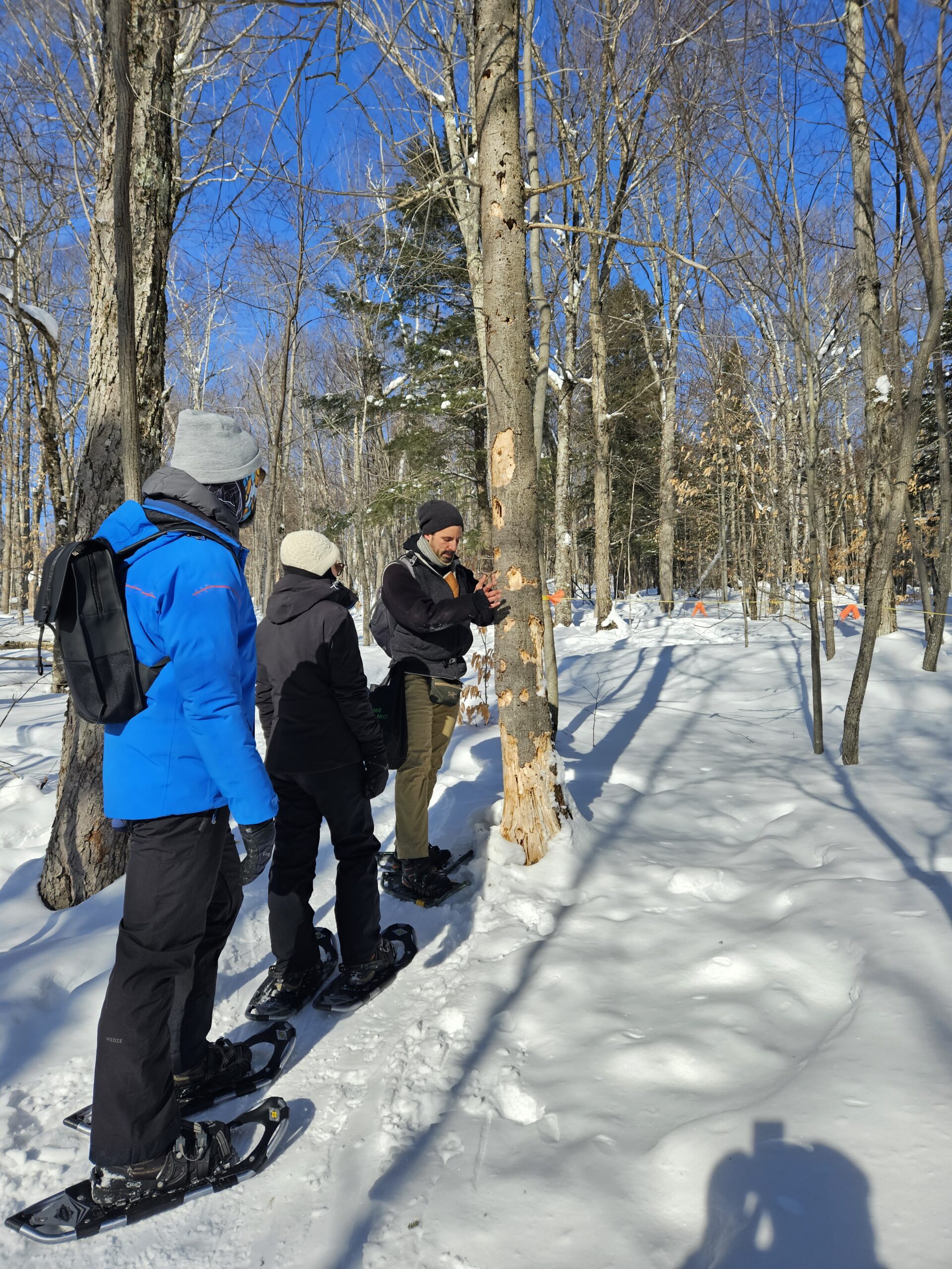Richard grew up in the region, knows these forests intimately, and has been with us for more than 20 years. More than just an outdoorsman, he’s a talented musician playing 5 instruments, a sculptor, and you-tube personality (check out Les Randonneurs Masqués). Both guides focus on helping you feel comfortable on snowshoes while teaching you how to interpret, and understand, and enjoy our winter environment. Their guiding style is relaxed and attentive, adjusting the pace to ensure everyone enjoys the experience.