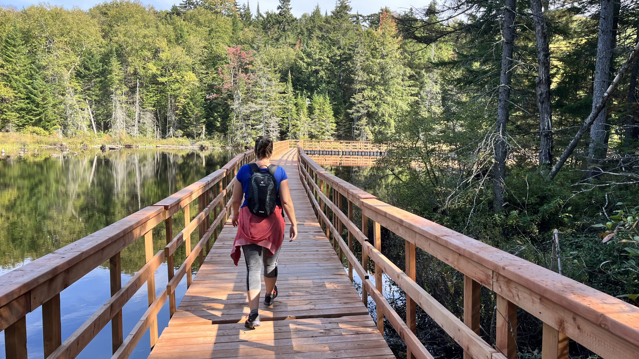 Not in the Parc with the exception of Parc Eco gravel road (shared with cars and pedestrians). Note that the linear parc ”Le P’tit’ Train du Nord” is approximately 20 minutes from Les Refuges Perchés.