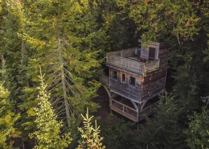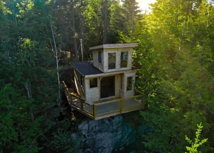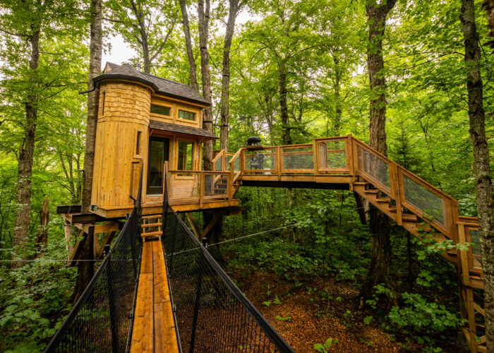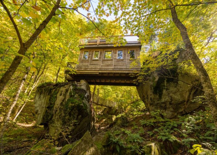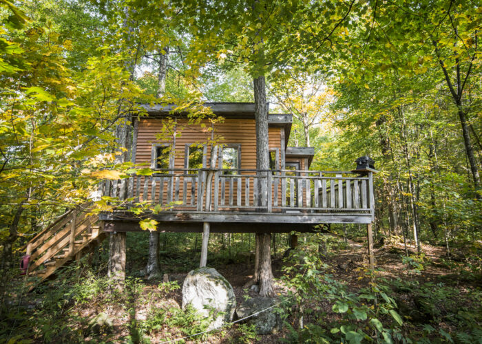 Tremblant Treehouses at Les Refuges Perchés is a 4-season treehouse camping getaway in a protected regional park, on the shores of a pristine lake.