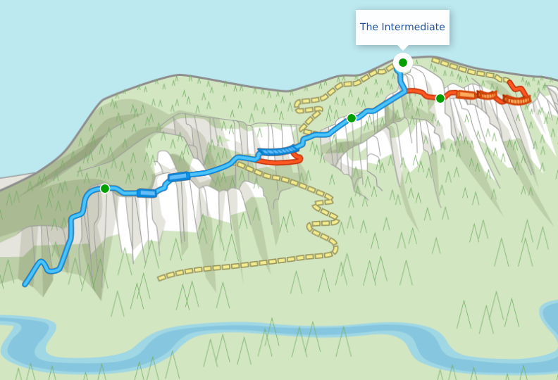 800 metres long (green plus orange routes below), our Via Ferrata – The Adventure takes approximately 5 hours including a 1h15 walk back to the departure point. Premiering our National Park’s wildlife reserve, this exciting route is built onto the Vache Noire rock wall. After making a 200-metre ascent, you will be struck by a spectacular view of the mountains and horizon.
