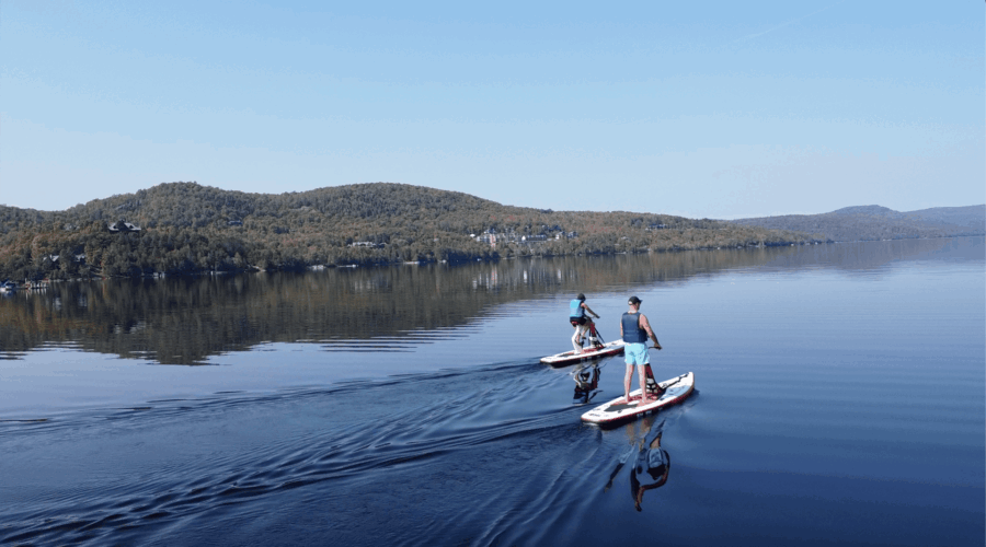 Picture yourself cruising on Lake Tremblant on a water bike. It’s a super chill way to take in the stunning views of the area, whether you’re flying solo, teaming up with someone (you can actually link two bikes together!), or bringing the whole crew. And if you’re feeling a bit more adventurous, hop on one of our E-nautical scooters!