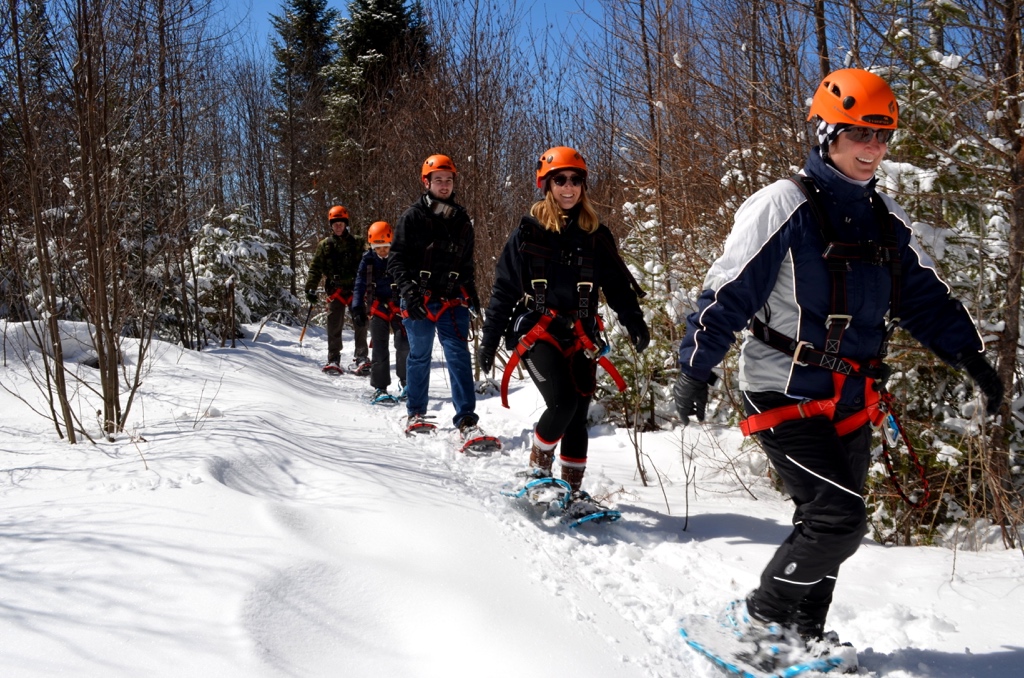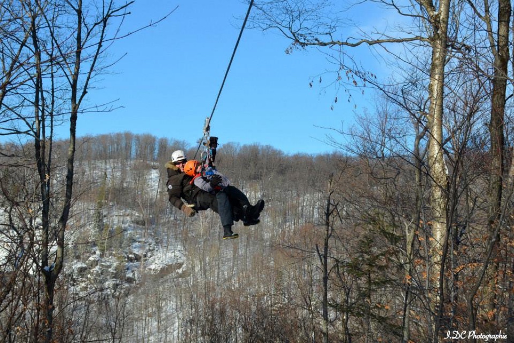 You will start our zipline activity with a 45-minute snowshoe or hike (depending on the season) on Mont-Catherine. The hike up to the zipline is a high-intensity activity, it’s important to be in good physical condition. When the weather is cold, you will be able to warm up in a teepee at the top before starting your descent. Then, fly from summit to summit on 2 mega ziplines. The first zipline is 3,000 feet long and up to 380 feet above the trees! You can warm up again before skimming the tops of the trees on the 2,132 foot long second zipline. Thrills guaranteed !